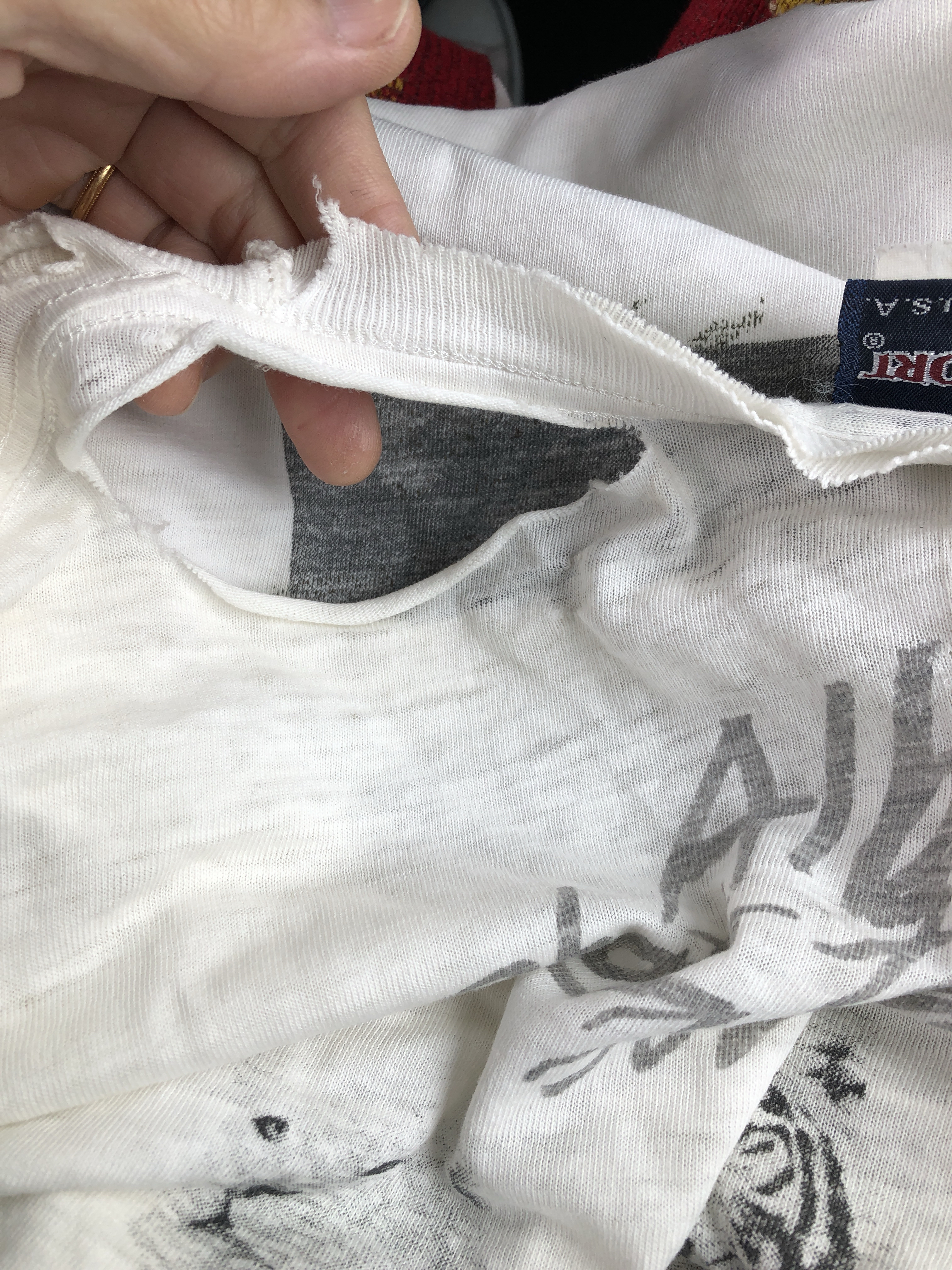 裏の補強生地は本体と同年代の、ビンテージTシャツを2枚