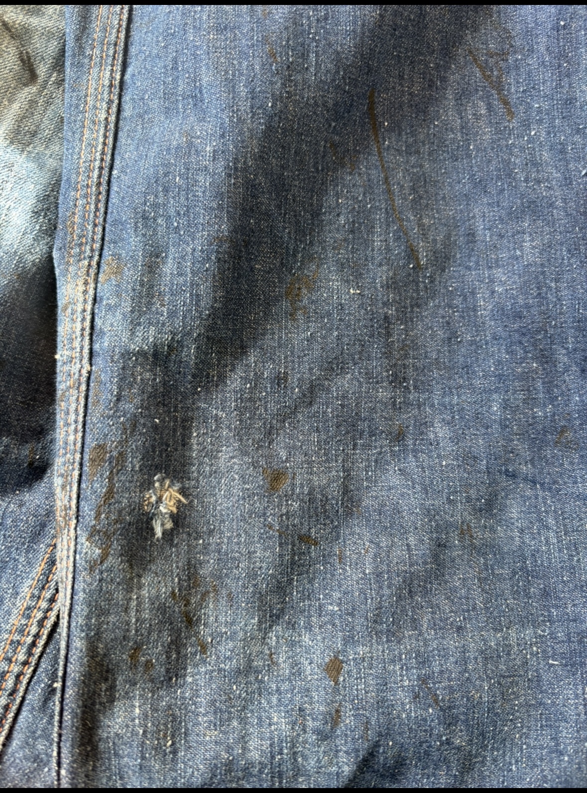 ヴィンテージデニムパンツに2箇所破れがありました