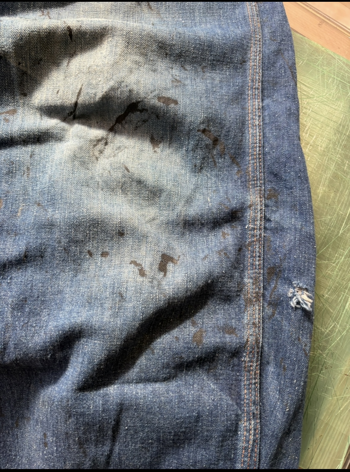 ヴィンテージデニムパンツ破れ補修前